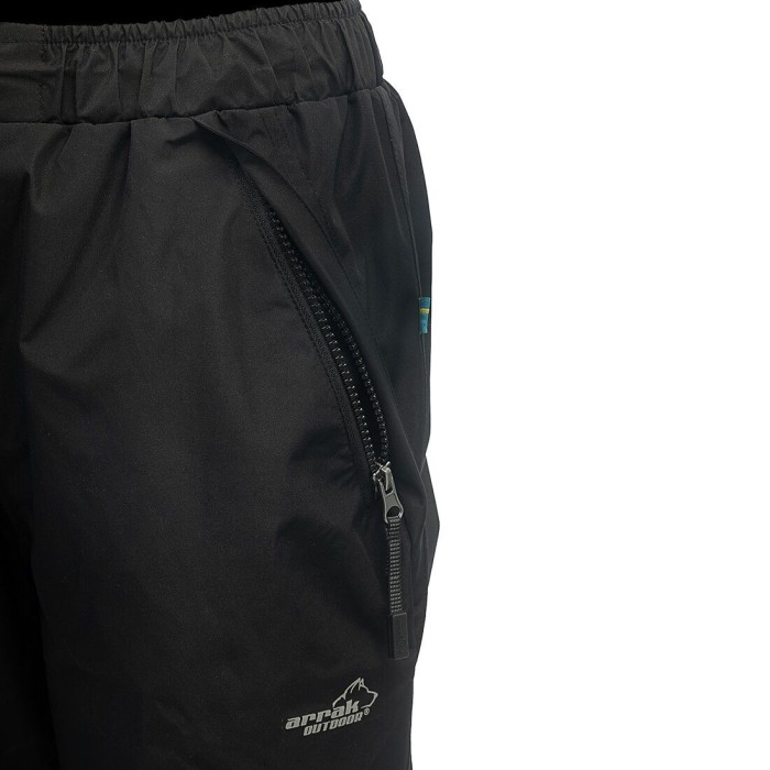 Byxorna har en vattenpelare på 10 000 mm och andningsförmåga på 5 000 g/m²/24h, vilket ger ett pålitligt skydd mot väta samtidigt som de släpper ut fukt. Midjan har resår med dragsko för flexibel passform, och nederdelen av benen är utrustade med dragkedja och kardborrejustering för enkel av- och påklädning samt extra ventilation. Två handfickor med dragkedjor ger trygg förvaring av dina småsaker.