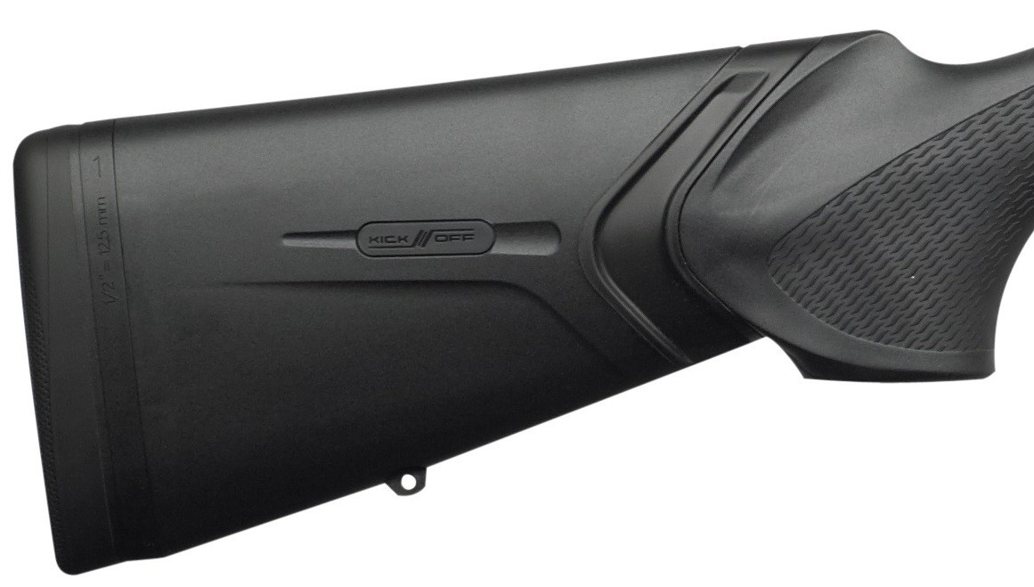En A400 som kombinerats mellan den vanliga modellens 12/76 patronläge och den rekyldämpande kolven från A400 Extreme . Rekyldämpningen är placerad framför kindens kontaktyta på kolven och gör att du kan ligga kvar i anlägget medan systemet dämpar rekylen.