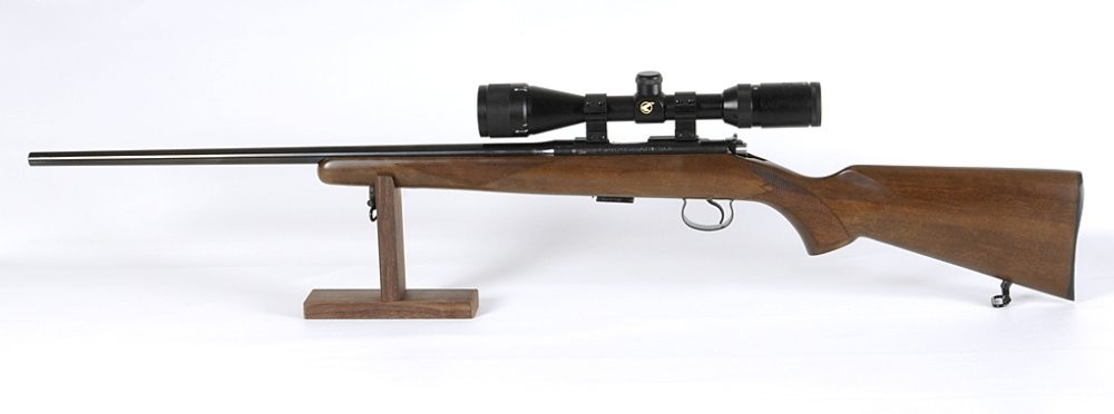 Ett förträffligt vapen för såväl jakt som sport- och övningskjutning. Kolven är av vackert valnötsträ med fina nätskärningar.