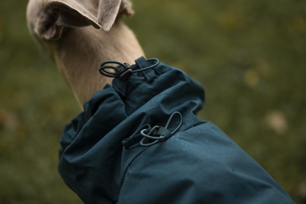 Smarta detaljer som öppning för sele, dräneringshål, reflekterande tryck och bensnören gör Fjord Lined Raincoat till en pålitlig följeslagare även i tuffare förhållanden. Finns i flera storlekar för både små och stora hundar.