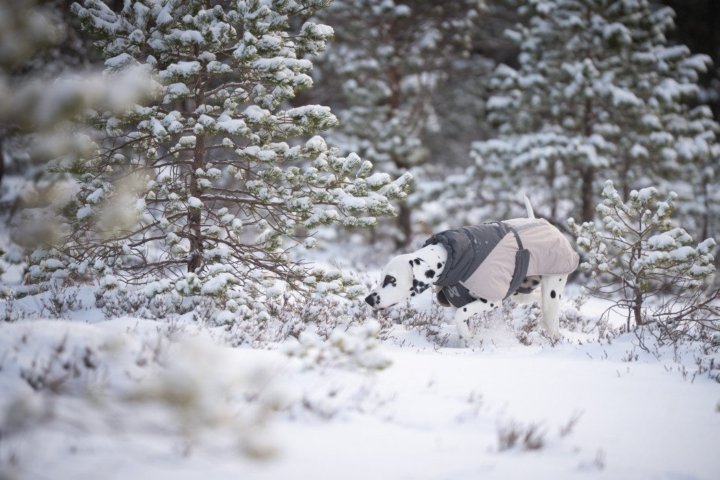 Jackan är isolerad med ECO-isolering och har ett mjukt foder av merinoull som hjälper till att reglera hundens kroppstemperatur. Ullen absorberar fukt utan att kännas kall och ger behaglig värme både under och efter rörelse.