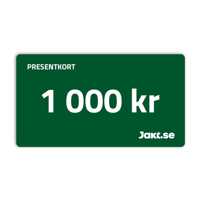 Ett presentkort från Jakt.se är alltid välkommet. Köp presentkort via vår hemsida, vi e-postar sedan ett presentkort (som .pdf-fil som ni kan skriva ut om ni vill) till er med en unik kod som ni kan använda som betalning via hemsidan.