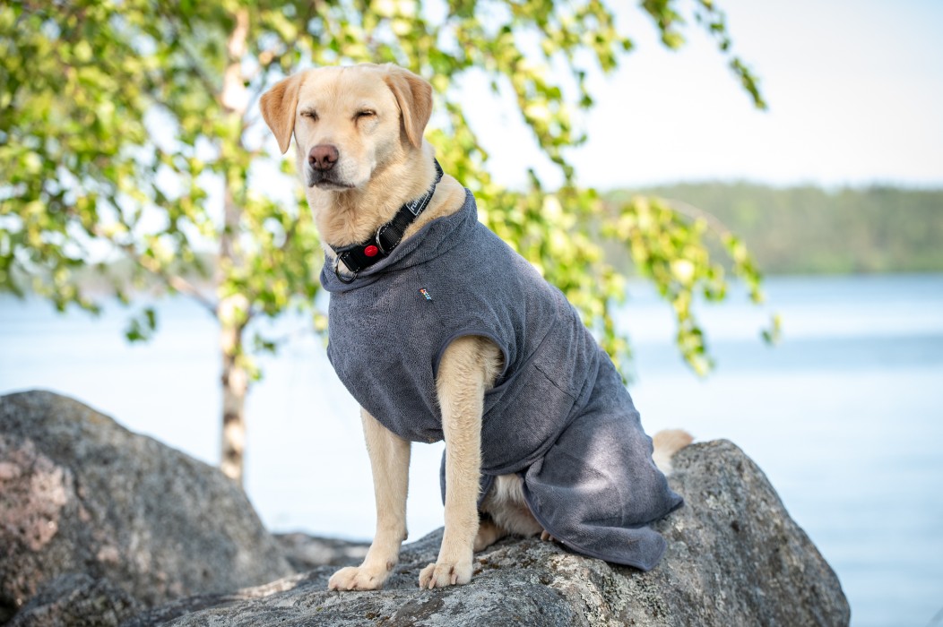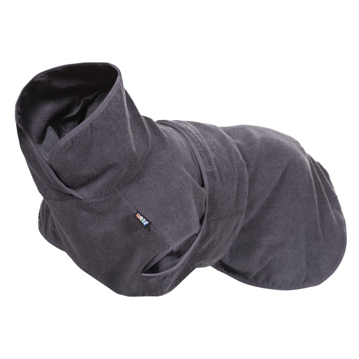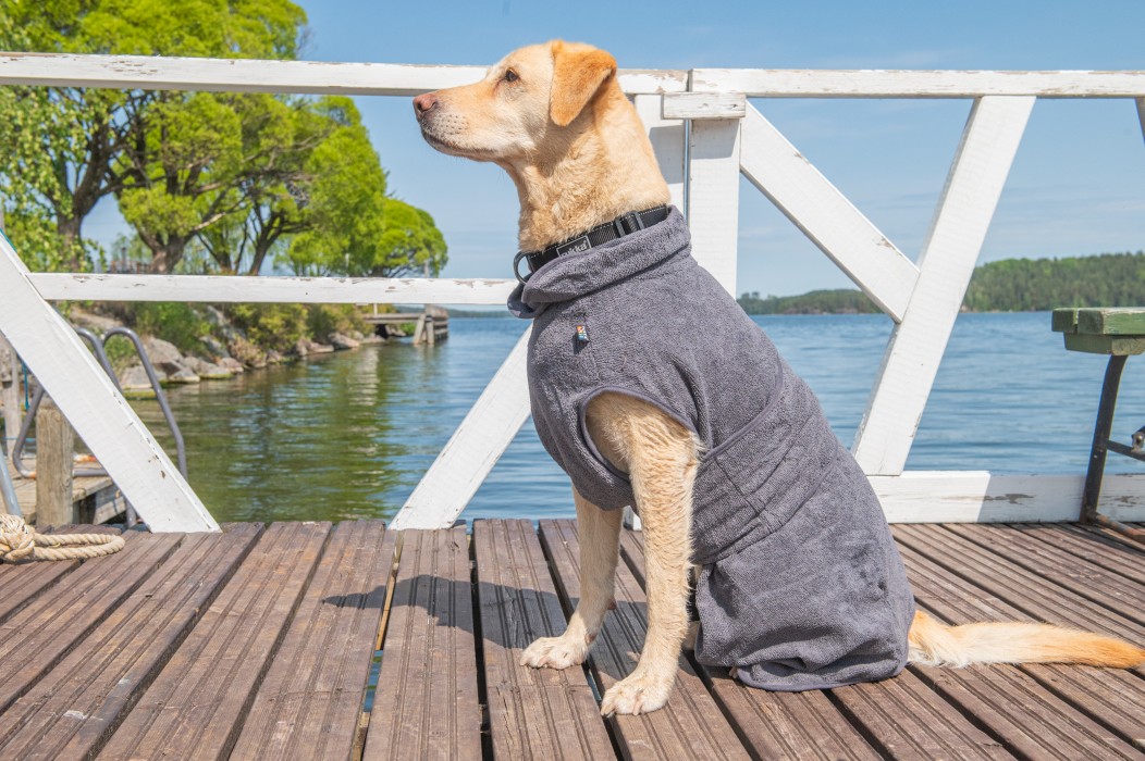 Produkten är tvättbar i maskin och blir ännu bättre efter upprepade användningar. Under varma sommardagar kan badrocken även användas som svalkande plagg. Blöt den i kallt vatten, vrid ur och låt hunden bära den för en kylande effekt.